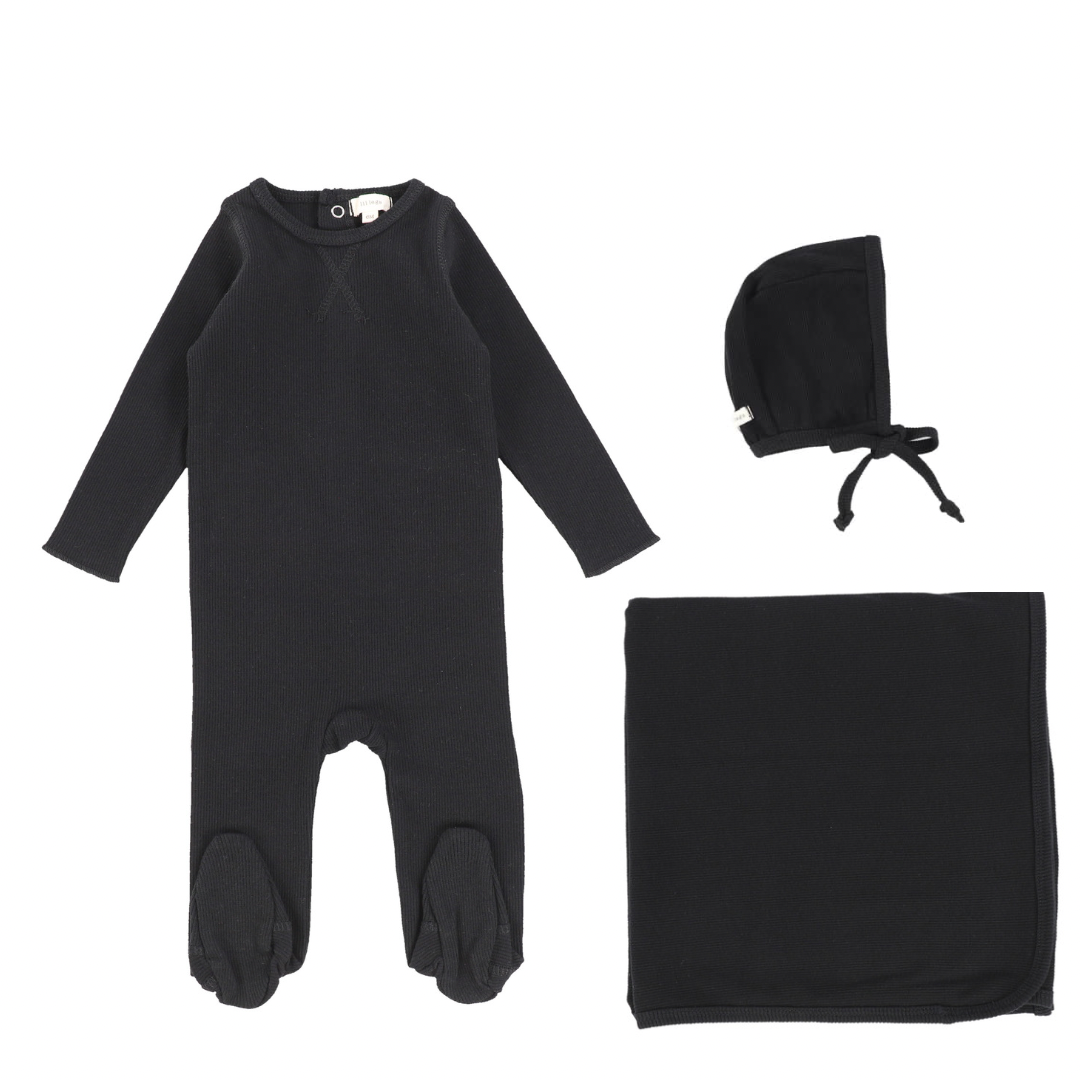 Black Classic Ribbed Layette Set