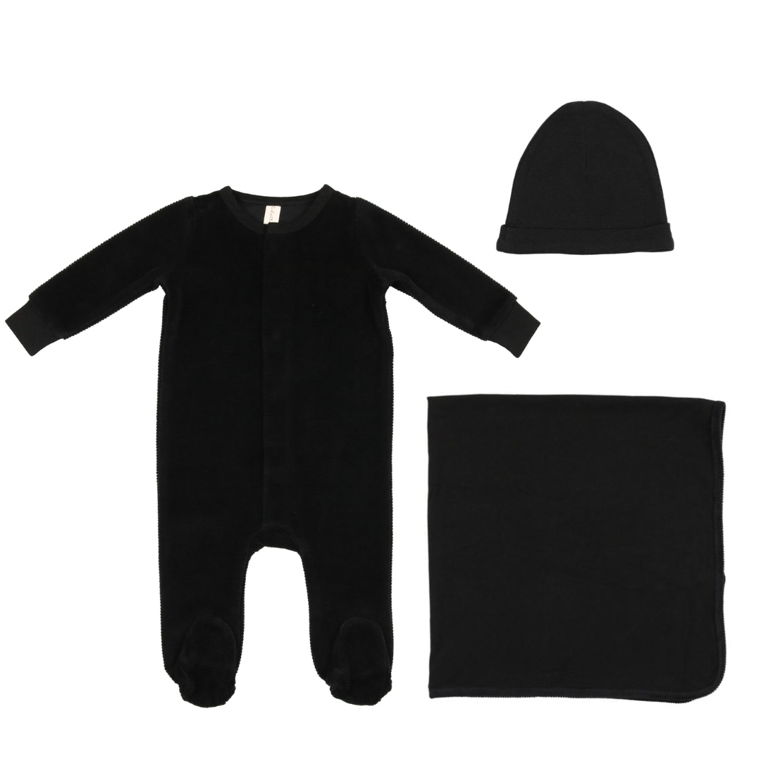 Black Velour Ribbed Logo Layette Set